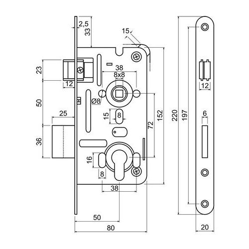 Zadlabací zámok pre cylindrickú vložku, PZ, 20mm