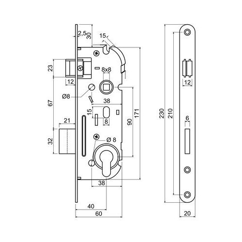 Zadlabacie zámky pre cylindrickú vložku, PZ, 20mm