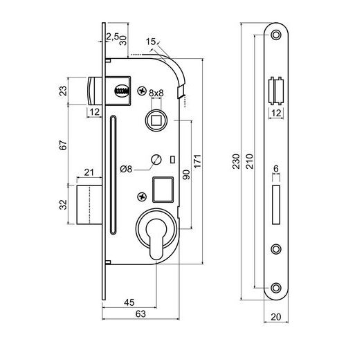 Zadlabacie zámky pre cylindrickú vložku, PZ, 20mm