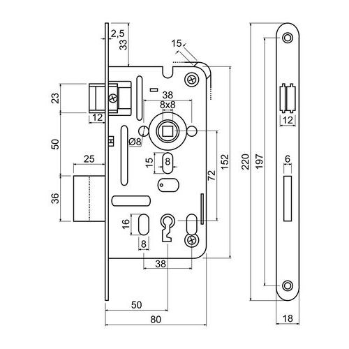 Zadlabací zámok pre dozický kľúč, BB, 18mm