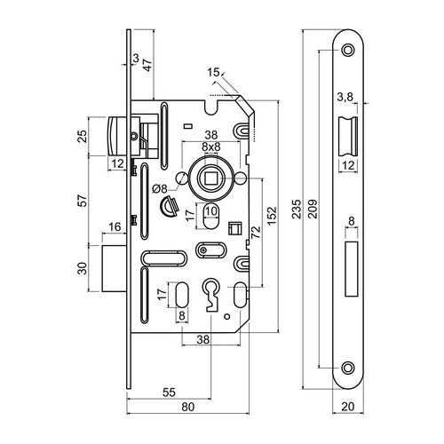 Zadlabacie zámky pre dozický kľúč, BB, 20mm