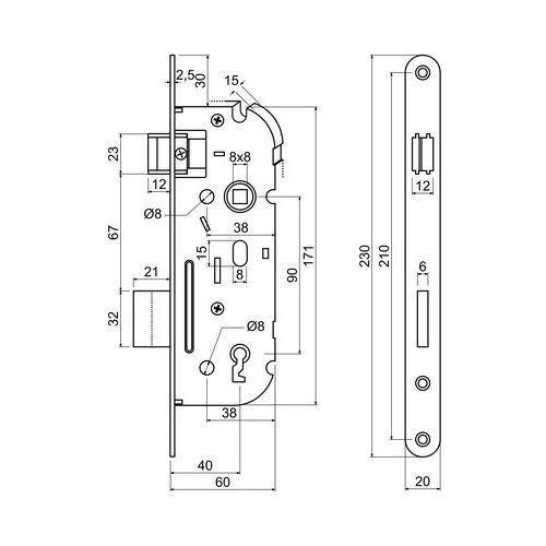 Zadlabacie zámky pre dozický kľúč, BB, 20mm