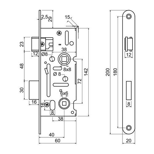Zadlabací zámok pre WC kľučku, 20mm