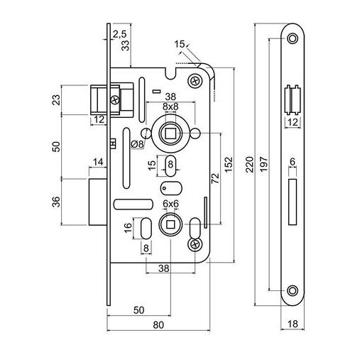 | Názov produktu | Zadlabací zámok pre WC kľučku, 18mm |
