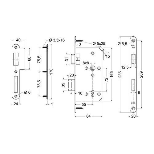 Zadlabací zámok s certifikátom na 500 000 cyklov otvorení, nerez