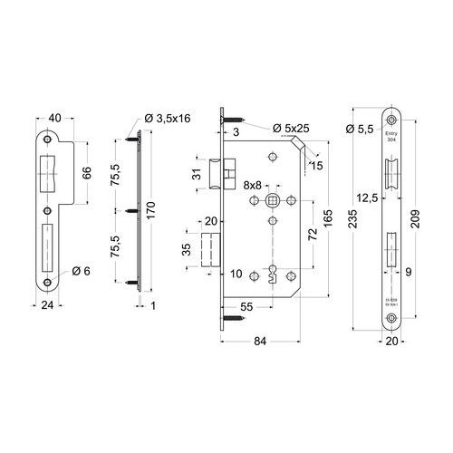 Zadlabací zámok s certifikátom na 500 000 cyklov otvorenia, čierna