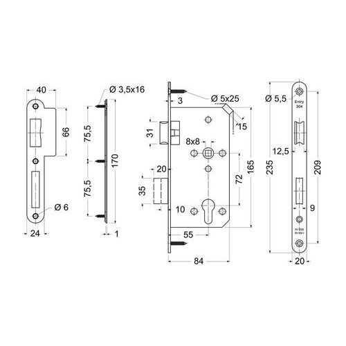 Zadlabací zámok s certifikátom na 500 000 cyklov otvorení, nerez