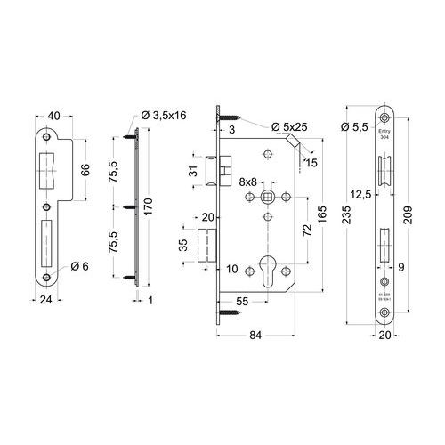 Zadlabací zámok s certifikátom na 500 000 cyklov otvorenia, čierna