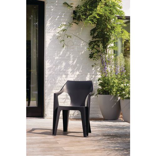 - Plastové vonkajšie stoličky pre každú záhradu alebo pergolu.
