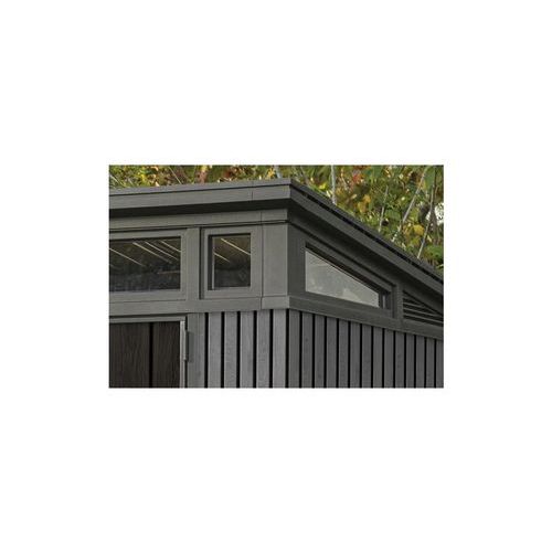 - Bezúdržbový plastový záhradný domček Vertical je vyrobený z jedinečného materiálu Decocoat, ktorý je inšpirovaný moderným vzhľadom v imitácii dreva.