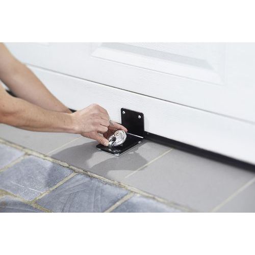- Zabraňuje zatlačeniu garážových brán: dve vnútorné zarážky upevnené k podlahe.