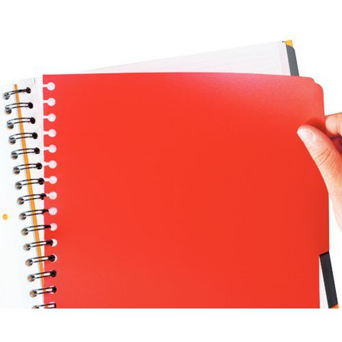- Obsahuje štyri oddiely listov s rôznofarebnými okrajmi a tromi polohovateľnými deličmi, ktoré uľahčujú organizáciu.