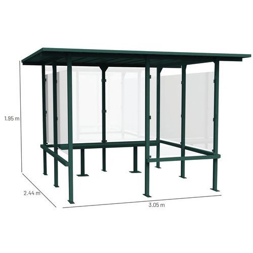 Zasklený prístrešok Manutan Expert Beaufortain s lavičkou, dĺžka 3,05 m, zelený