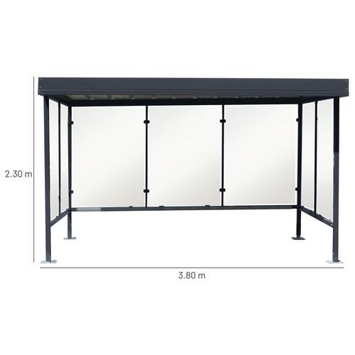 Zasklený prístrešok Manutan Expert Beaulieau, dĺžka 3,8 m, antracit