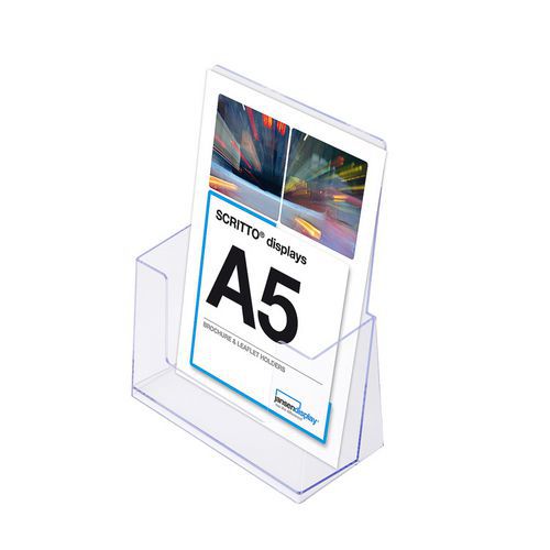 Plastové stojančeky na letáky, brožúry, propagačné materiály a pod. Orientované na výšku. Možnosť upevnenia na stenu. Stojanček sa štandardne dodáva bez potlače. Vyrobené v EÚ