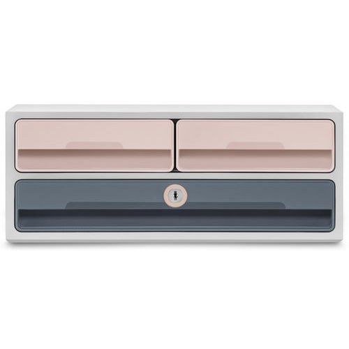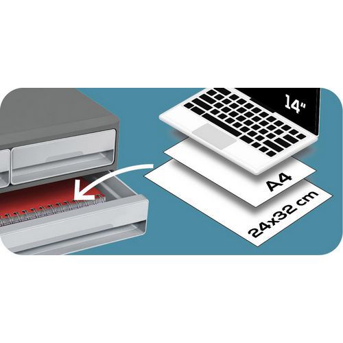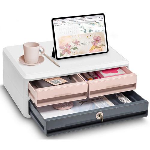 - Menšie zásuvky na uloženie kancelárskych potrieb (perá, kalkulačka, blok A5 atď.).