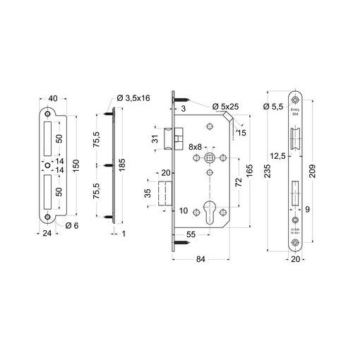 Záťažový zadlabací zámok pre cylindrickú vložku, PZ