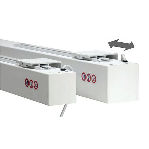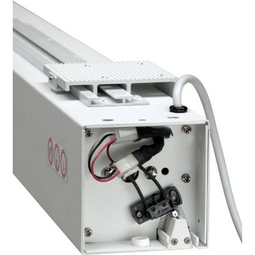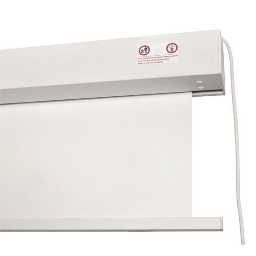 - Nástenné premietacie plátna majú variabilný montážny systém (VMS), vďaka ktorému sa dajú ľahko a pohodlne namontovať na stenu alebo strop. 50 cm dvojité drážky zaisťujú polohovanie držiaka vpravo a vľavo. Plynulé nastavenie výšky plátna. Komfortná a bezpečná obsluha pomocou koncových spínačov na vysunutie a zasunutie projekčného plátna. Výstup kábla vpravo.