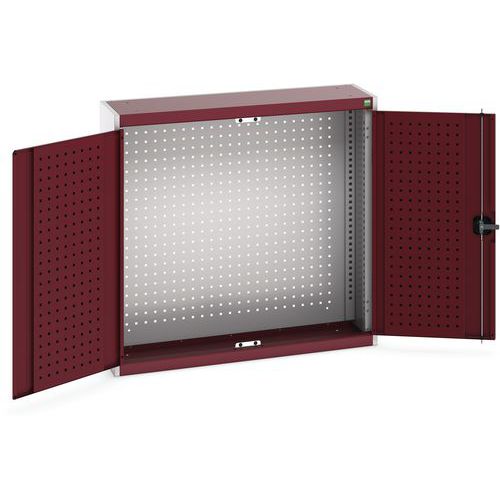 Závesná skrinka Bott Cubio, zadný panel typu perfo, 100 x 105 x 32,5 cm, šedá-červená