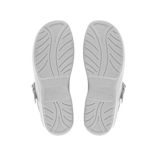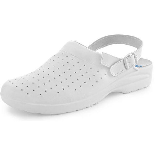 Zdravotnícka celokožená obuv s polohovateľnou páskou okolo päty. EN ISO 20347: Táto medzinárodná norma stanovuje základné a dodatočné (nepovinné) požiadavky na pracovnú obuv, ktorá nie je vystavená mechanickým rizikám (nárazu alebo stlačeniu).