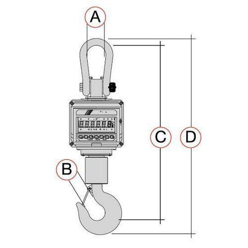Robustná žeriavová váha vhodná do skladov a nepretržitých prevádzok.Telo prístroja je vyrobené z kovu, ktorý zaručuje zvýšenú odolnosť a pevný závesný hák je vybavený poistkou proti vykĺznutiu vážených predmetov.Displej váhy je podsvietený a ľahko čitateľný z väčších vzdialeností.Štandardne je s váhou dodávané diaľkové ovládanie.Napájanie je riešené pomocou vstavaného akumulátora (prevádzkový čas cca 50 h, dobíjanie cca 14 h).Výška váhy vrátane háka je 61 cm.