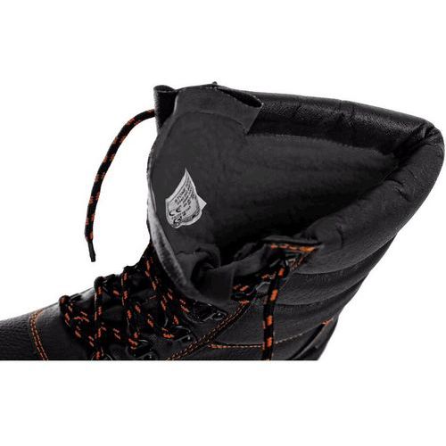 Kožené vysoké topánky zateplené umelým kožúškom. Topánky sú vybavené oceľovou špicou a antistatickou, protišmykovou a olejovzdornou podrážkou. EN ISO 20345: Táto medzinárodná norma stanovuje základné a dodatočné (nepovinné) požiadavky na bezpečnostnú obuv na používanie na bežné účely. Zahŕňa mechanické riziká, odolnosť proti pošmyknutiu, tepelné riziká a ergonomické správanie.