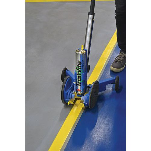 Vhodné pre vnútorné aj vonkajšie použitie na vytvorenie parkovacích miest a vyznačenie výrobných, skladovacích, bezpečnostných plôch a chodníkov pre peších. Aplikátor vytvára rovné, čisté, jasné a vysoko odolné línie vďaka patentovanému systému prúdenia vzduchu, ktorý zabraňuje stekaniu farby mimo okraja línie. Značkovací stroj vhodný pre rôzne povrchy vrátane cementových, epoxidových, dechtových, makadamových, asfaltových a iných cestných povrchov. Zvoľte si ľubovoľnú šírku čiary medzi 50 a 100 mm. Nastaviteľné zadné kolieska umožňujú vyznačovať čiary v blízkosti stien, okrajov a zakrivených hrán.
