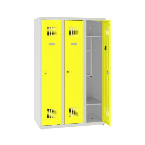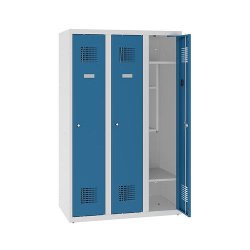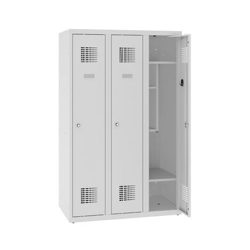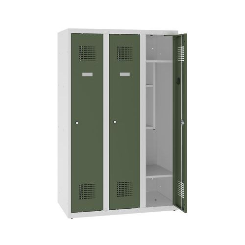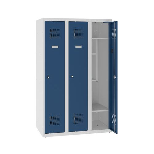 Znížené školské šatníky, 3 stĺpce, 300 mm, trojbodový cylindrický zámok
