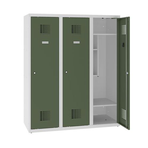 Znížené školské šatníky, 3 stĺpce, 400 mm, cylindrický zámok