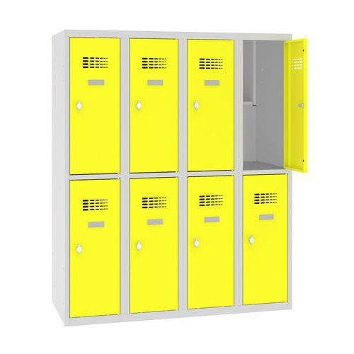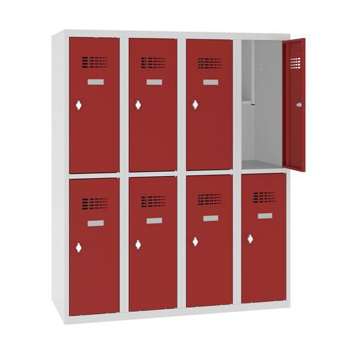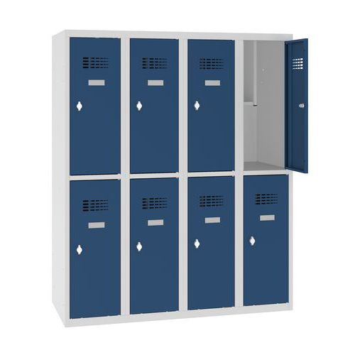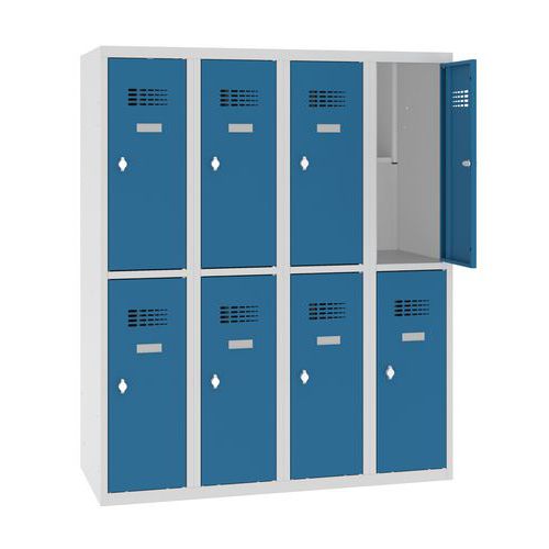 Znížené školské šatníky, 8 oddielov, 300 mm, otočný uzáver