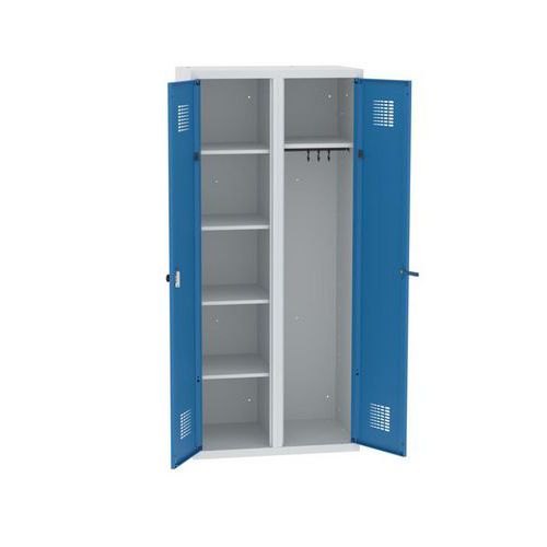 Zváraná čistiaca skriňa Chloe, 2 priehradky, šírka 800 mm, cylindrický zámok, sivá/modrá Zváraná čistiaca skriňa Chloe, 2 priehradky, šírka 800 mm, cylindrický zámok, sivá/modrá