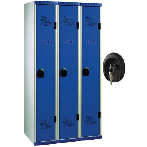 | Názov produktu | Zváraný šatník Acial, 3 oddiely, 300 mm, cylindrický zámok, sivý/modrý |