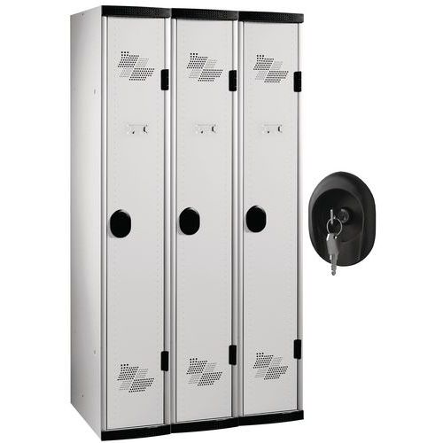 | Názov produktu | Zváraný šatník Acial, 3 oddiely, 300 mm, cylindrický zámok, sivý/sivý |