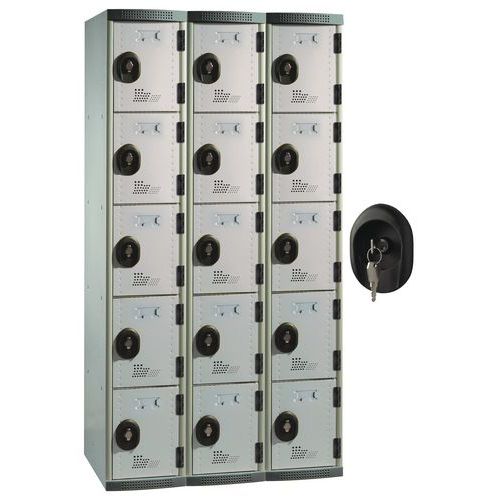 | Názov produktu | Zvárané šatníky Acial, 3 stĺpce, 15 boxov, 300 mm, cylindrický zámok |