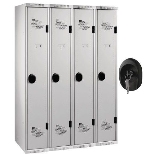 | Názov produktu | Zváraný šatník Acial, 4 oddiely, 300 mm, cylindrický zámok, sivý/sivý |