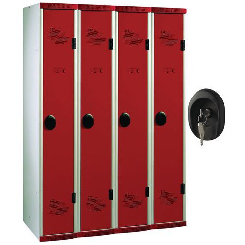 | Názov produktu | Zváraný šatník Acial, 4 oddiely, 300 mm, cylindrický zámok, sivý/červený |