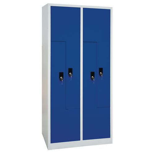 | Názov produktu | Zváraný šatníkl, dvere Z, 4 oddiely, cylindrický zámok, sivý/modrý - Manutan Expert Car |