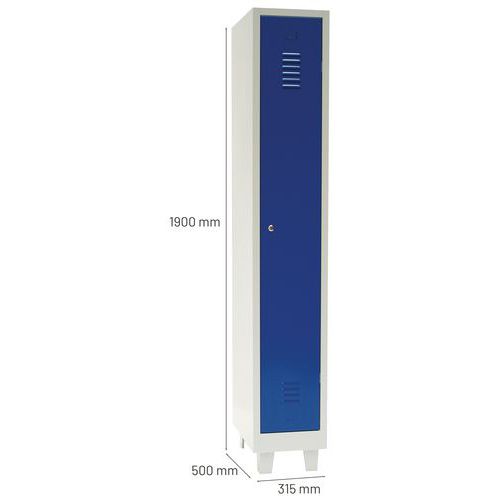 Zváraný šatník Manutan Expert DURO PROFI na nohách, 1 oddiel, sivý/modrý, cylindrický zámok
