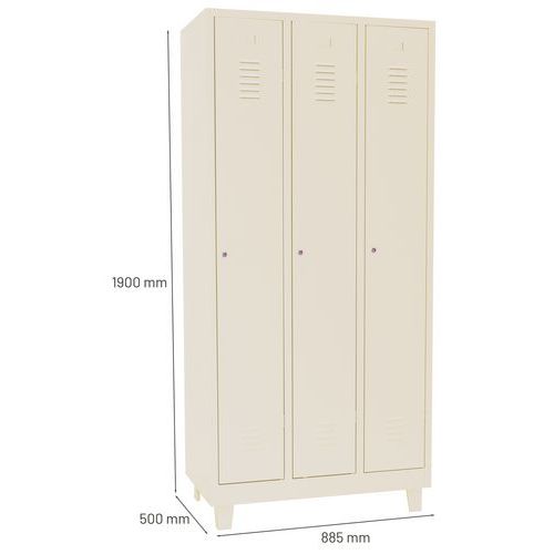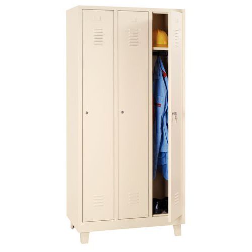 Zváraný šatník Manutan Expert DURO PROFI na nohách, 3 oddiely, béžový/béžový, cylindrický zámok