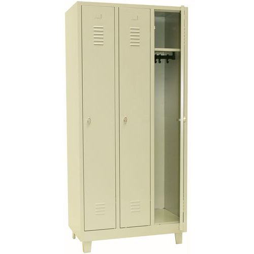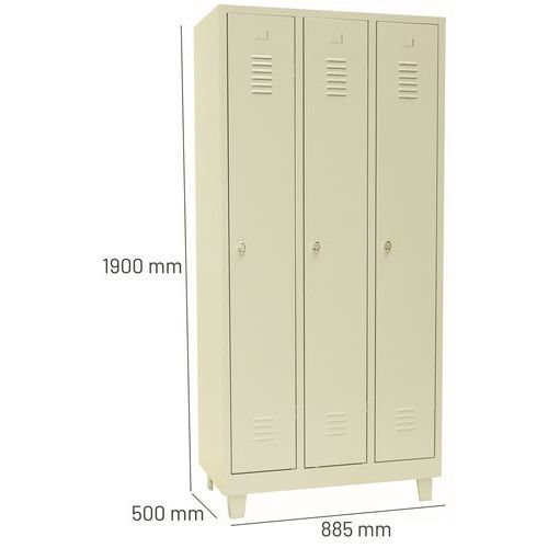 Zváraný šatník Manutan Expert DURO PROFI na nohách, 3 oddiely, béžový/béžový, otočný uzáver