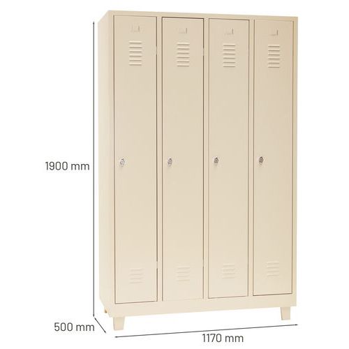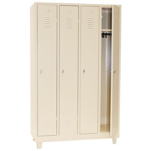 Zváraný šatník Manutan Expert DURO PROFI na nohách, 4 oddiely, béžový/béžový, otočný uzáver