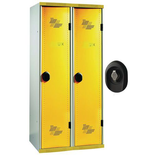 | Názov produktu | Zváraný šatník s medzistenou Acial, 2 oddiely, 400 mm, otočný uzáver, sivý/žltý |