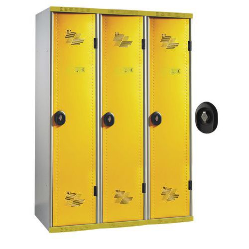 | Názov produktu | Zváraný šatník s medzistenou Acial, 3 oddiely, 400 mm, otočný uzáver, sivý/žltý |