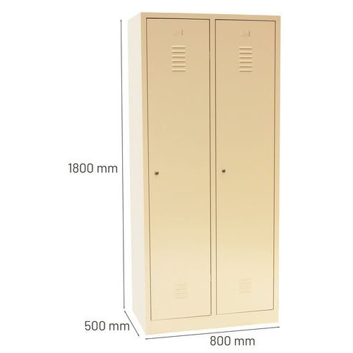 Zváraný šatník s medzistenou, 2 oddiely, béžový/béžový, cylindrický zámok - Manutan Expert DURO PROFI