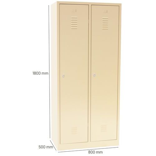 Zváraný šatník s medzistenou, 2 oddiely, béžový/béžový, otočný uzáver - Manutan Expert DURO PROFI