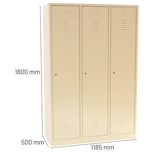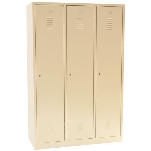 Zváraný šatník s medzistenou Manutan Expert DURO PROFI, 3 oddiely, béžový/béžový, cylindrický zámok