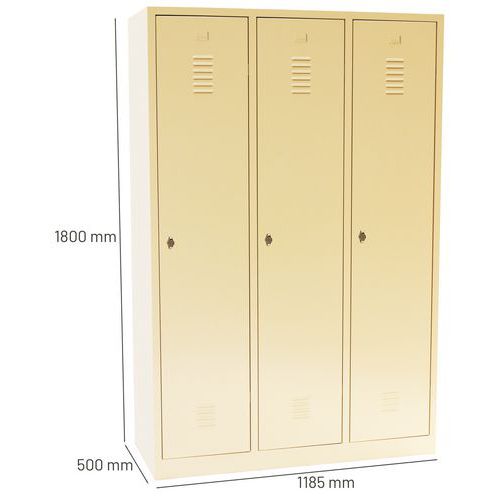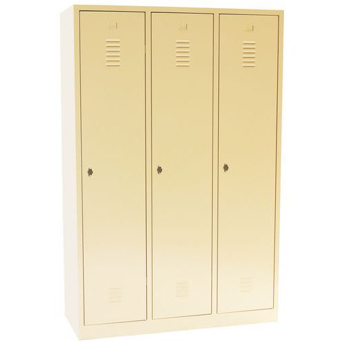 Zváraný šatník s medzistenou, 3 oddiely, béžový/béžový, otočný uzáver - Manutan Expert DURO PROFI