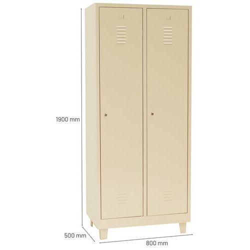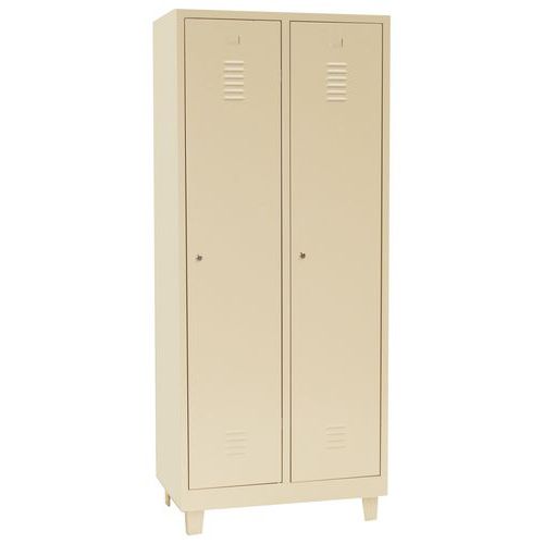 Zváraný šatník s medzistenou Manutan Expert DURO PROFI na nohách, 2 oddiely, béžový/béžový, cylindrický zámok