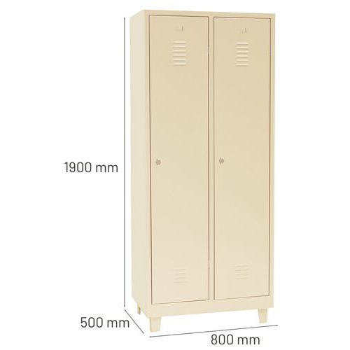 Zváraný šatník s medzistenou Manutan Expert DURO PROFI na nohách, 2 oddiely, béžový/béžový, otočný uzáver