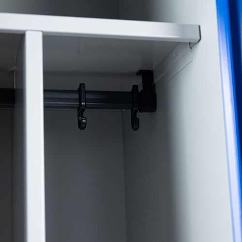Súčasťou balenia je polica, tyč na vešiaky, 3 háčiky na odevy a vnútorná medzistena. K variantu s cylindrickým zámkom sa dodávajú dva kľúče.